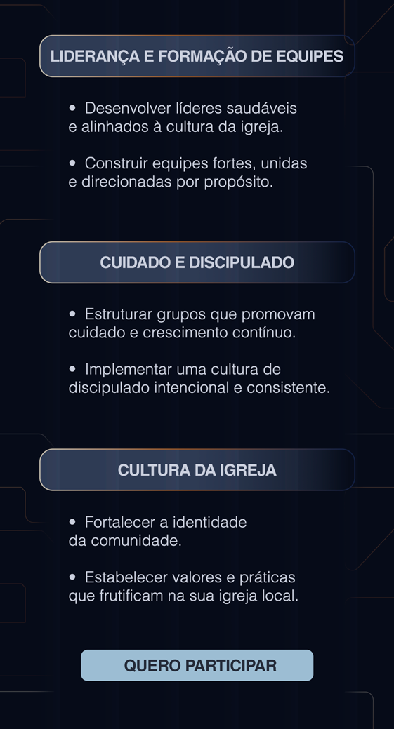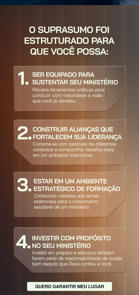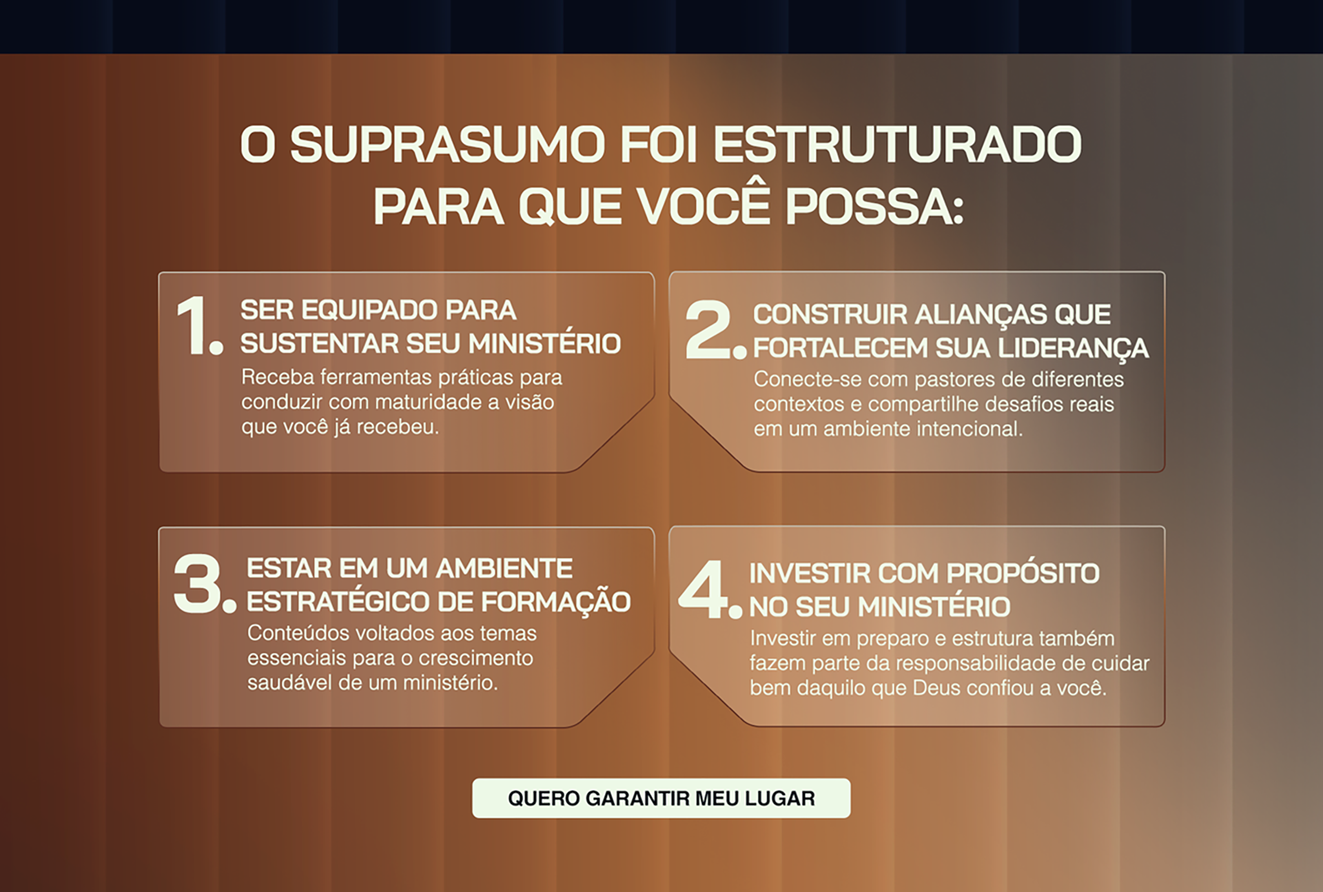Nosso evento é focado em pastores que querem crescer em liderança, visão e impacto.